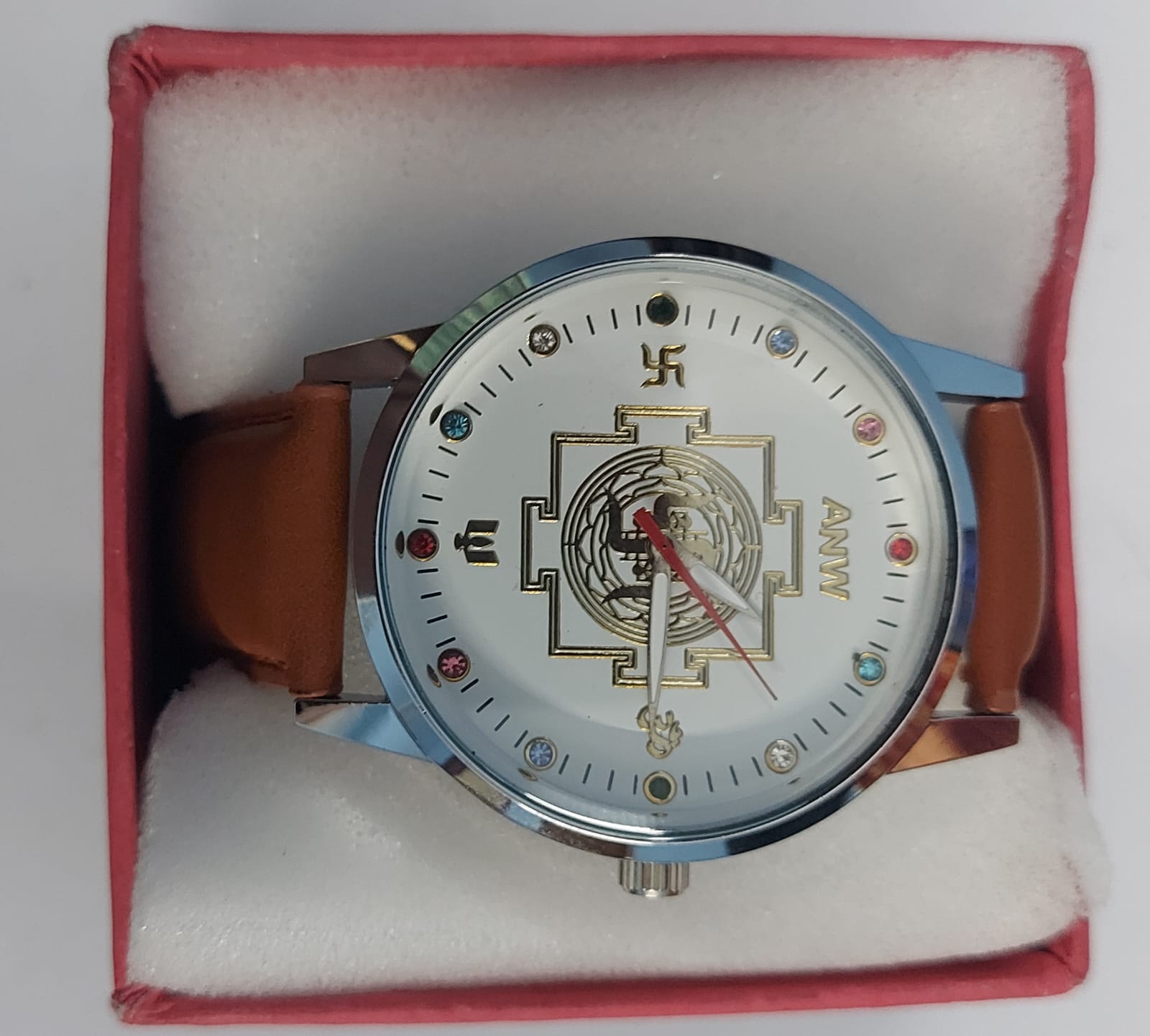 Crafted with precision, the watch incorporates sacred symbols such as the Makshya Yantra on the back and the Sri Yantra on the dial, both known for their ability to attract positive energies and create a protective aura around the wearer. The integrated gemstones correspond to the ruling planets, offering additional healing properties and energy balance. Designed to suit both men and women, the Astro Navagraha Watch is perfect for those who appreciate the fusion of fashion, spirituality, and astrology.